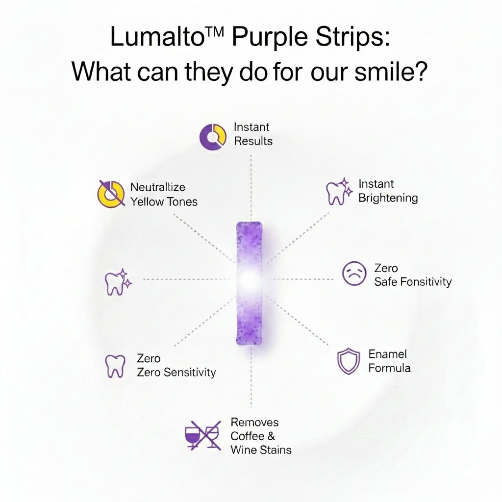 Designed for everyday use, Lumalto™ strips help lift stains while staying gentle on enamel.